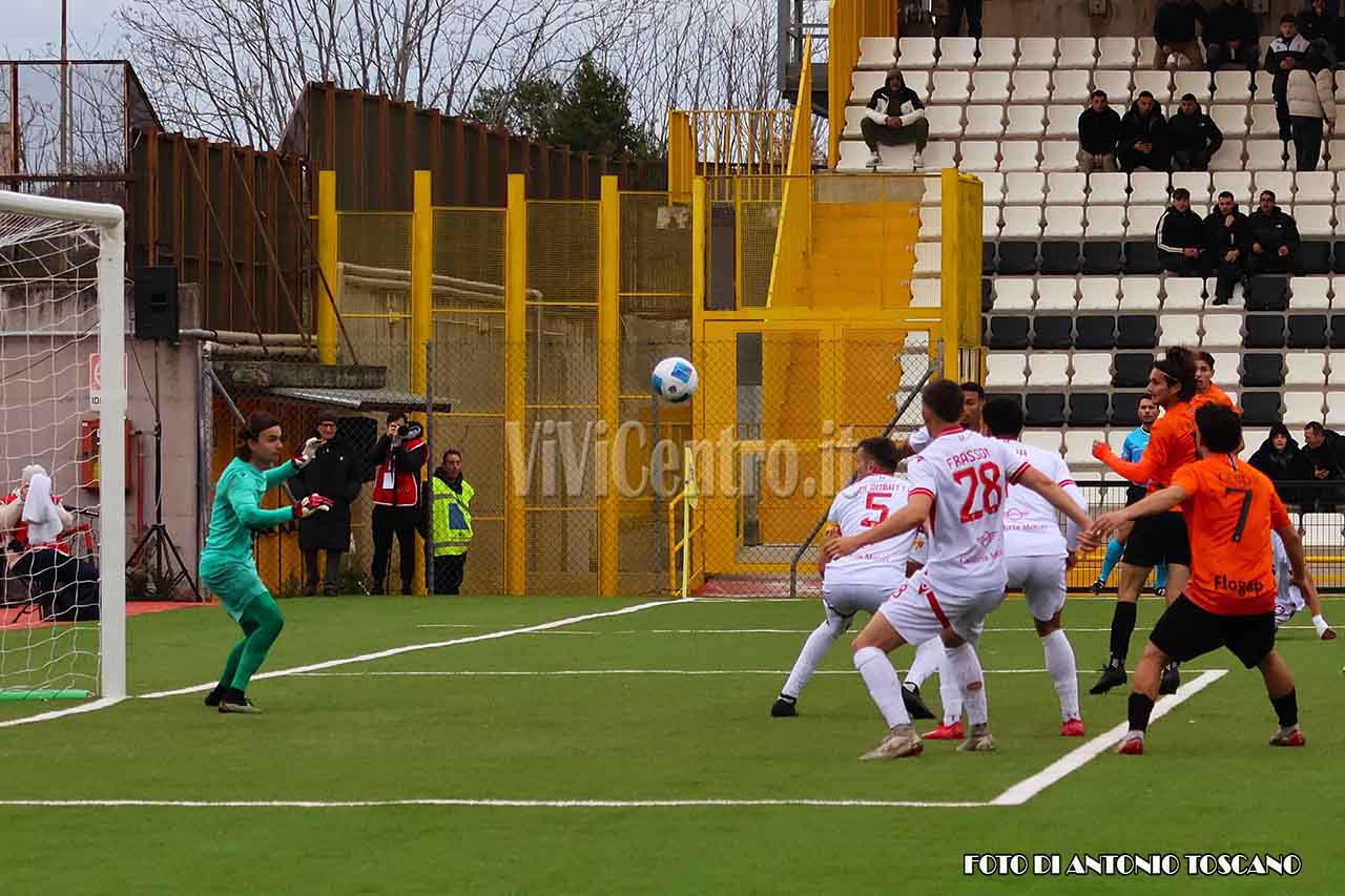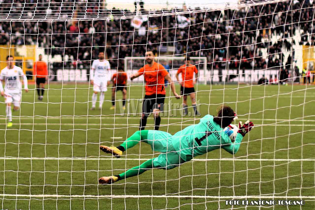 Al 42’ il Sambiase sfiora il vantaggio: punizione di Costanzo per la testa di Colombatti, parata miracolosa di Iuliano.