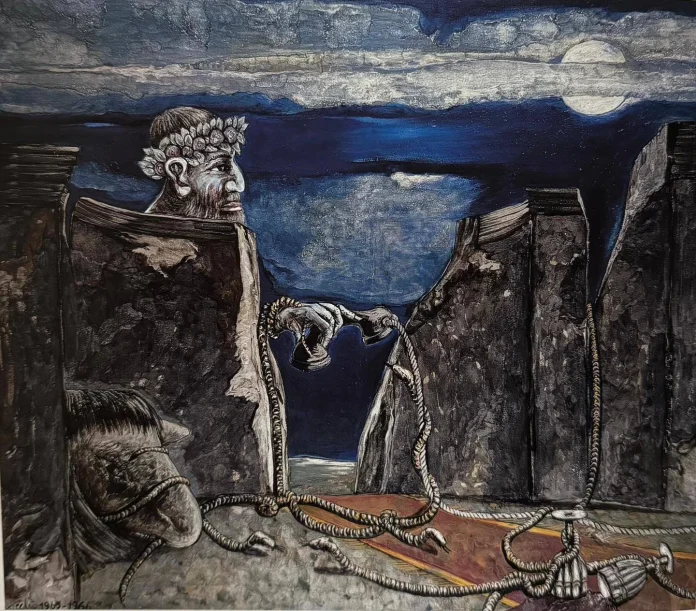 Con 35mila visitatori e l’importante donazione della grande tela “La telefonata di marmo” (1966) si chiude domani, martedì 27 gennaio, la mostra ”Sogno mediterraneo. Sergio Vacchi” omaggio del Museo e Real Bosco di Capodimonte a Napoli all’artista scomparso dieci anni fa (Castenaso, Bologna, 1º aprile 1925 – Siena, 15 gennaio 2016) uno dei più originali e significativi protagonisti del Novecento italiano. Entra infatti nelle collezioni di Capodimonte, per volontà della Fondazione Vacchi, un’opera del ciclo Federico II di Hohenstaufen che, con raffinata ironia, ha al centro l’archeologia, il mare, la storia del territorio tra arte, artigianato e architetture. In particolare, “La Telefonata di marmo” (200×230 cm, smalto su tela), opera ermetica e fantastica, è ambientata in un notturno mediterraneo. La testa dell’imperatore emerge da una quinta architettonica mentre la mano solleva la cornetta del telefono in un tempo sospeso e congelato, carico di tensione ma apparentemente calmo. L’oggetto entra anacronistico in un’ ambientazione storica del passato creando immediatamente contemporaneità e interrogativi, sfidando certezze e cronologie. Il dipinto induce alla riflessione con un richiamo alla simbologia dei serpenti.