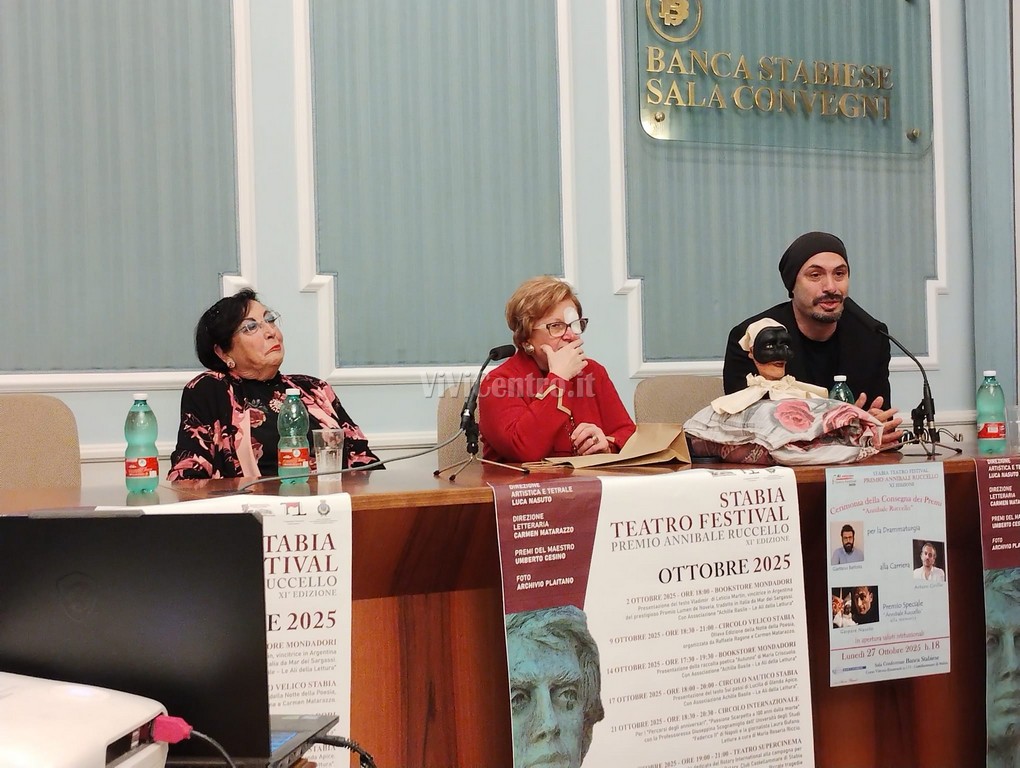Per celebrare la figura di Annibale Ruccello, compianto drammaturgo e attore stabiese, lunedì sera 27 ottobre, nella Sala Conferenze della Banca Stabiese al Corso Vittorio Emanuele in Castellammare di Stabia, si è svolta la cerimonia di consegna dei premi dello Stabia Teatro Festival “Annibale Ruccello” 2025.