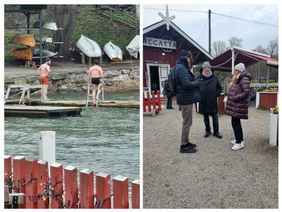 Il luogo conserva ancora casette in legno di vari colori, la chiesa che funge anche da faro e il sottomarino militare finlandese Versikko, costruito tra il 1931 e il 1933, ancorato oggi in una baia dell’isola e adibito a museo. Il mercato di Turku, antica capitale della Finlandia, ha offerto l’occasione di degustare all’aperto le aringhe del Baltico e i munkii e i tippaleipa, dolcetti tipici finlandesi.Altri piatti degustati in Finlandia la zuppa di salmone, la zuppa di alce e la carne di renna accompagnata da purè di patate, cetrioli e mirtillo rosso. Insomma, un’esperienza a tutto tondo che ha arricchito le menti e i cuori dei partecipanti. Un tuffo in un modo di vivere molto diverso dal nostro, di cui apprezzare il rispetto delle regole, il valore del silenzio, la promozione di tutti i talenti, l’erogazione di servizi efficienti al cittadino. Solo il freddo, forse, ha fatto venire un po’ di nostalgia di casa ai componenti del gruppo che, incappucciati e bardati con sciarpe, guanti e piumini, guardavano increduli i finlandesi uscire in costume dalle saune e immergersi noncuranti dei fiocchi di neve, nel gelido Mar Baltico!