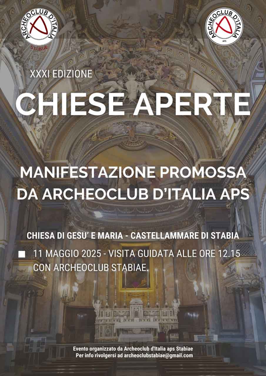 La visita alla Chiesa di Gesù e Maria a Castellammare di Stabia, domenica 11 maggio, con le guide dell’Archeoclub Stabiae è un itinerario immersivo nell’arte, nella storia, nella cultura, nella spiritualità: un appuntamento a cui non possiamo mancare.