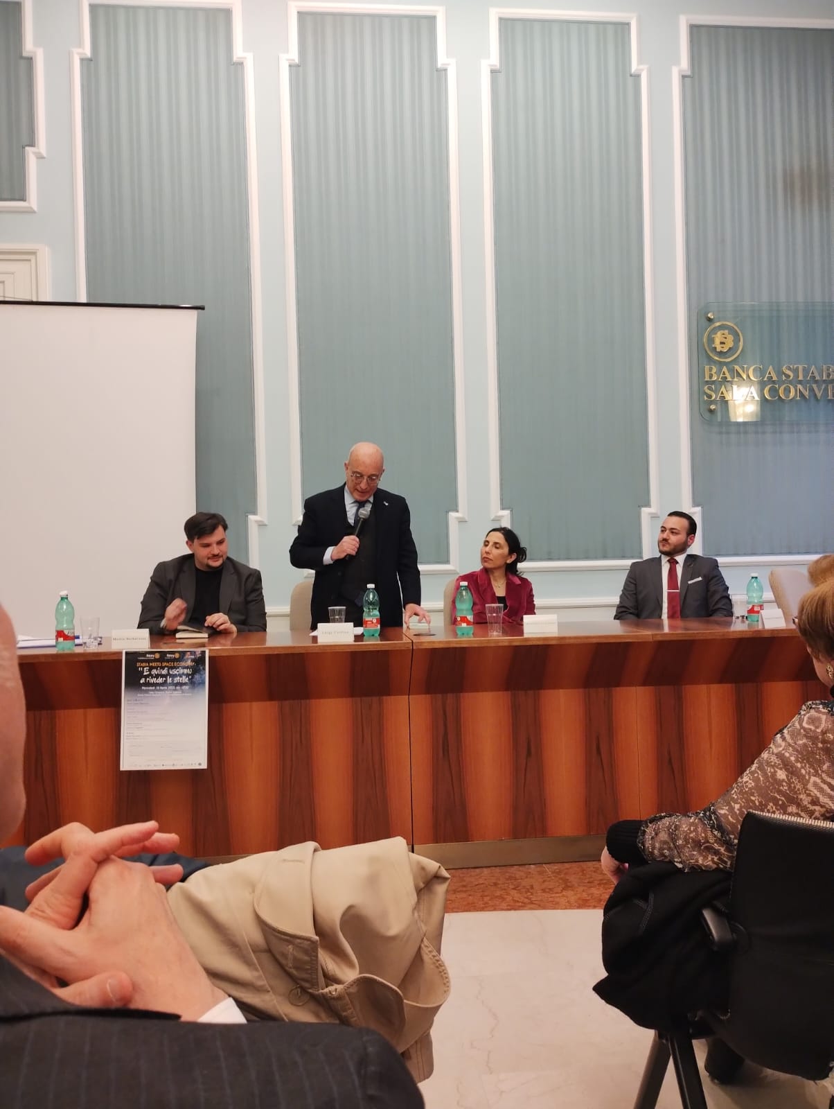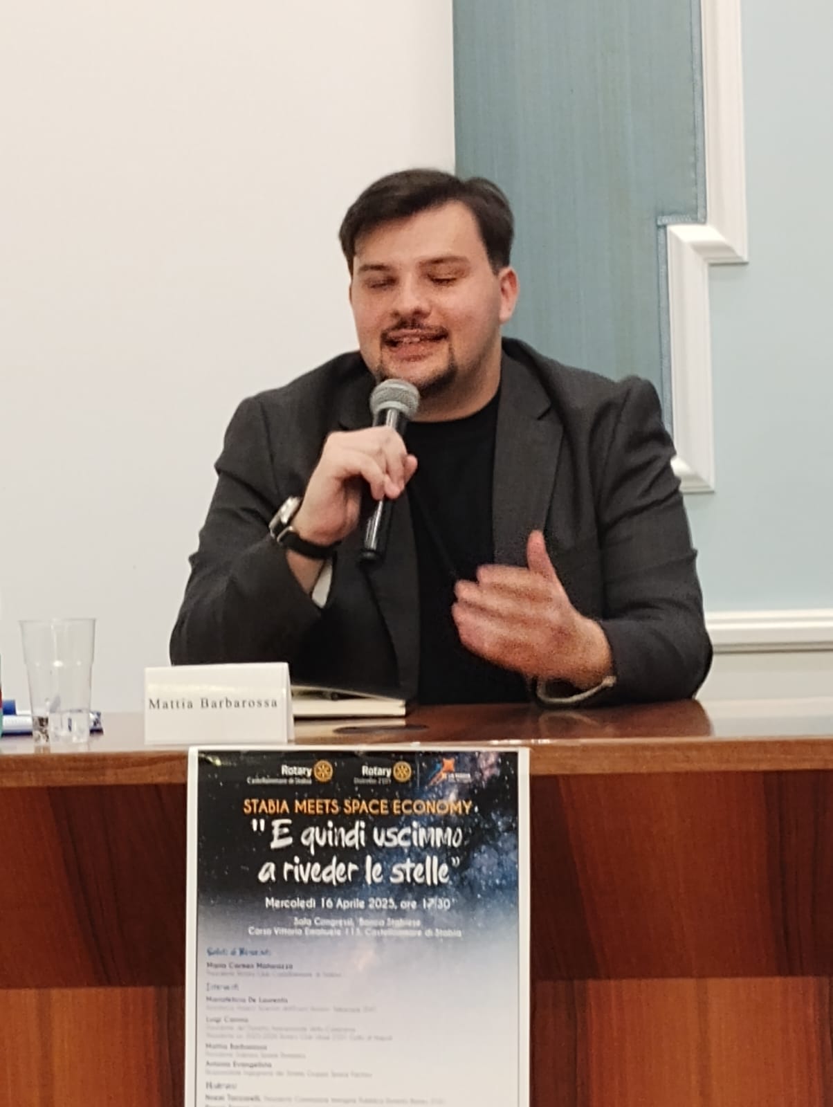 Antonio Evangelista, Responsabile Ingegneria dei Sistemi, del Gruppo Space Factory, di cui è fondatore Norberto Salza , premiato con il Premio Innovazione Smau: per “Irene”, il primo microsatellite con capacità di rientro autonomo e controllato dallo spazio, recupero e riutilizzo.A moderare gli interventi Noemi Taccarelli, Presidente Commissione Immagine Pubblica Distretto Rotary 2101e il bravo Giornalista Rocco Traisci.Dopo i saluti del Presidente del Rotary Club di Castellammare di Stabia, prof.ssa Maria Carmen Matarazzo, organizzatrice di eventi di grande spessore culturale, hanno preso la parola i relatori che hanno parlato delle sfide e delle opportunità offerte dalla Space Economy.