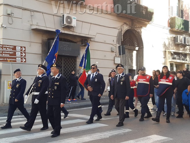 Mentre la banda intonava le note solenni del Piave ed altri suggestivi inni militari, il corteo ha attraversato Corso Vittorio Emanuele e Via Mazzini, fino alla Concattedrale di Santissima Maria Assunta e San Catello, in Piazza Giovanni XXIII.