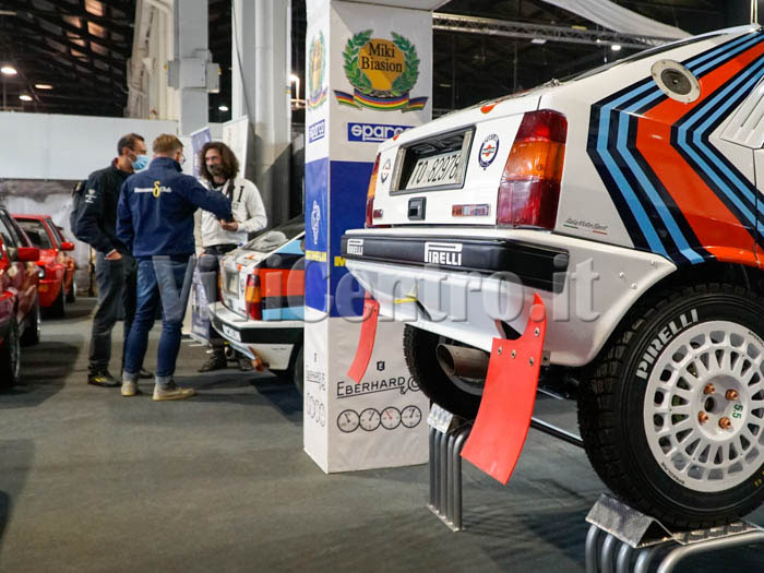 Anche la Lancia Delta 4WD Campione del Mondo 1987 è stata presente in fiera. Esposta per venderla, al padiglione 14, è stato proprio Miki Biasion, laureatosi Campione del Mondo per due volte proprio su Delta.