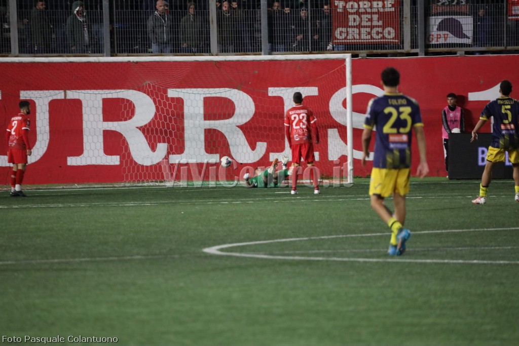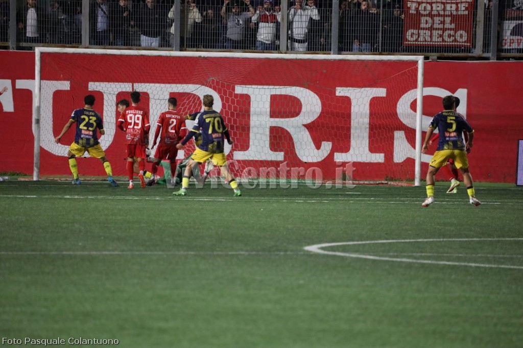 6° Rigore per la Turris: spalla a spalla di D’Amore su Pavone in area di rigore, l’arbitro indica il dischetto forse in maniera frettolosa. Tira Matera e segna il gol del 2-2.