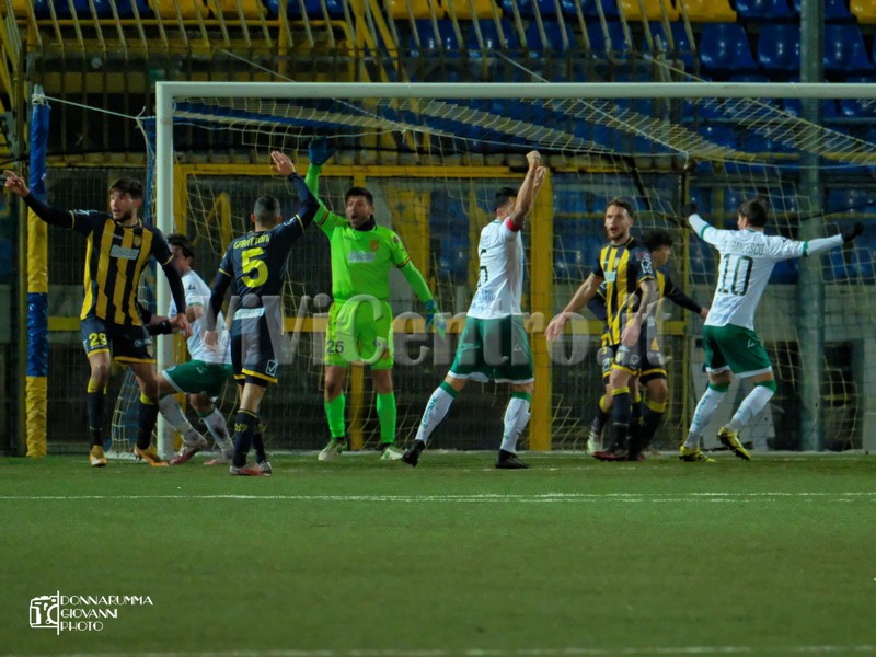 La gara è stata assolutamente rovinata dalle decisioni cervellotiche del sig. Marini di Trieste che ha rovinato letteralmente la partita nel secondo tempo. Al 15° del secondo tempo espulsione di Mulè per fallo da ultimo uomo con Esposito pronto a chiudere dietro. Poi il gol con palla uscita prima del tocco decisivo di Maniero e infine il mancato secondo giallo a Tito già ammonito per evidente fallo di mani. Fino a quel momento Juve Stabia in pieno controllo della gara. Domani le Vespe saranno di scena a Cava nel derby con la Cavese.