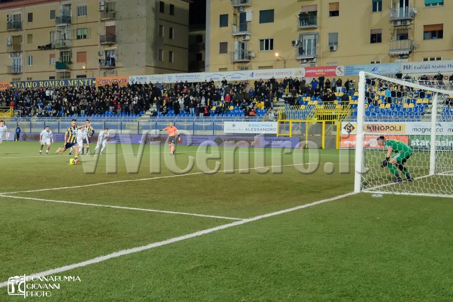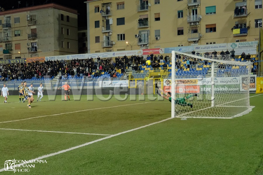 27° VANTAGGIO JUVE STABIA: va in gol Adorante di testa su perfetto cross di Piscopo dalla fascia destra.Azione iniziata da Baldi per Leone che smista su Piscopo, autore del perfetto assist per Adorante.