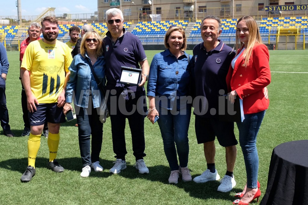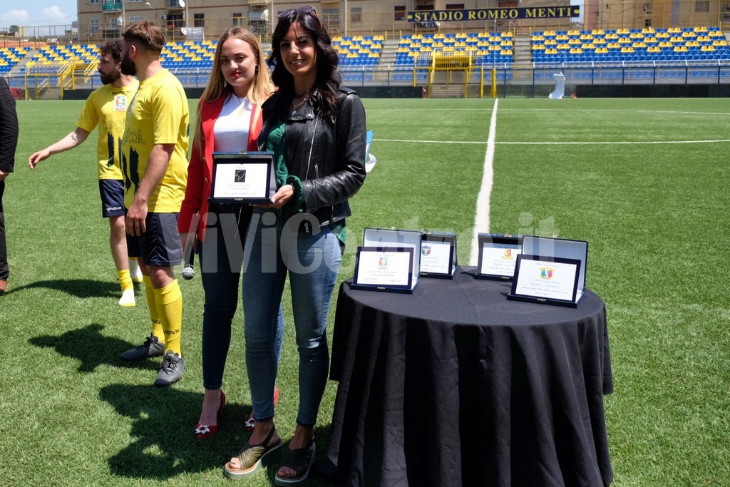 Vincenzo D’Ellena e Fabrizio Barberini, rispettivamente Presidente e Vicepresidente della Nazionale Calcio, sono stati protagonisti di un gesto simbolico all’inizio del torneo donando un pallone di colore rosso alla madrina Giusy Taddeo per simboleggiare la vicinanza dell’uomo alle donne vittime di violenza.