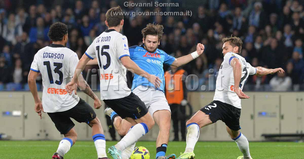 Alla mezz’ora il Napoli ha un’altra grande chance con Kvaratskhelia che da sinistra entra in area calcia di destro ma ancora una volta Musso c’è. Ancora una volta il portiere dell’Atalanta è eccezionale quando il pallone arriva a Politano che in area di rigore calcia con sinistro, ma il riflesso di Musso è perfetto.