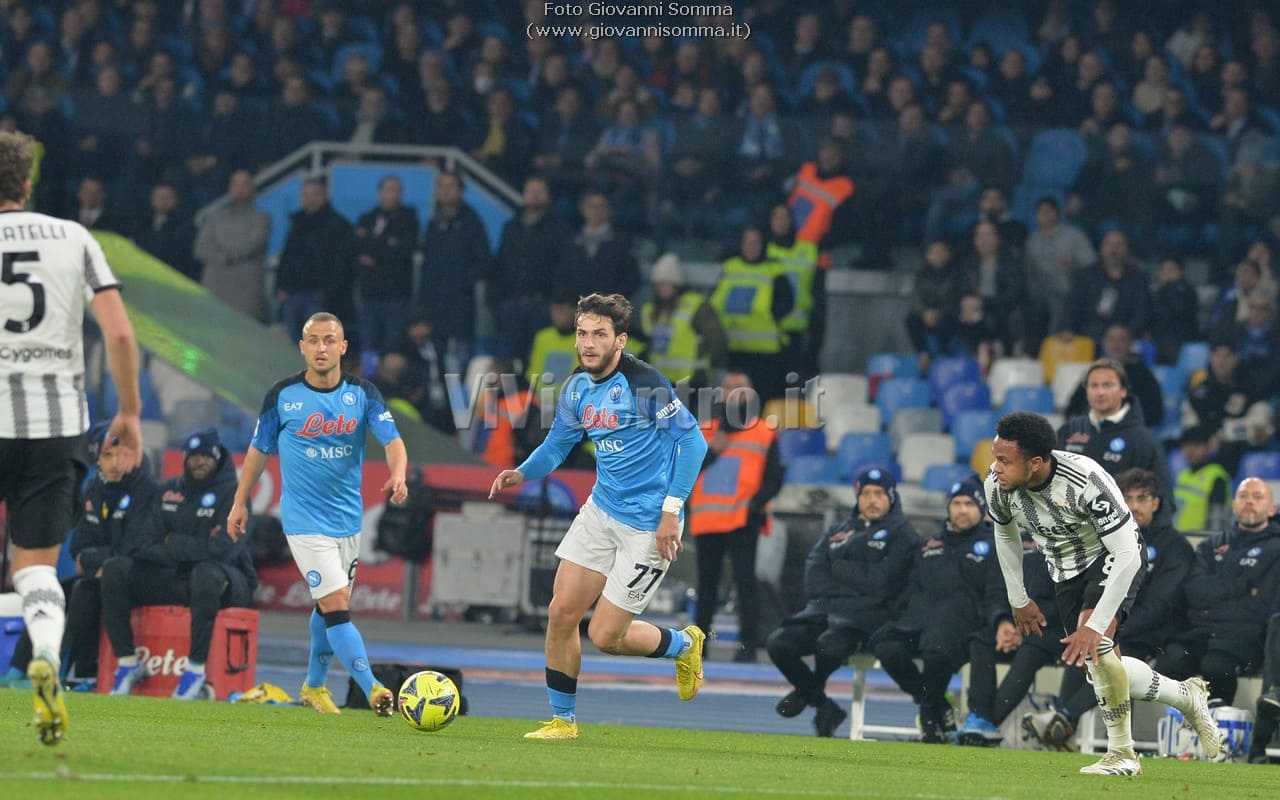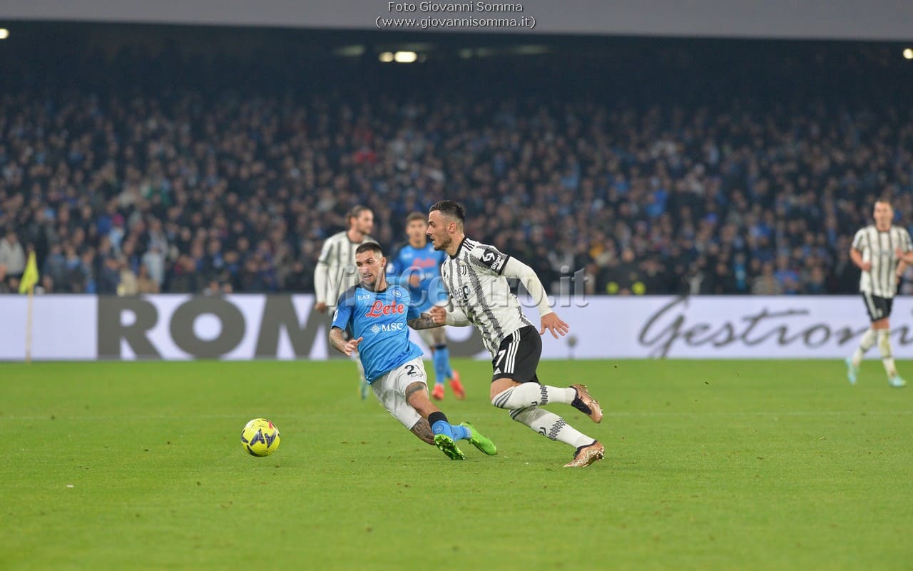Marcatori: 14′ Osimhen (N), 39′ Kvaratskhelia (N), 42′ Di Maria (J), 10′ st Rrahmani (N), 20′ st Osimhen (N), 27′ st Elmas (N)