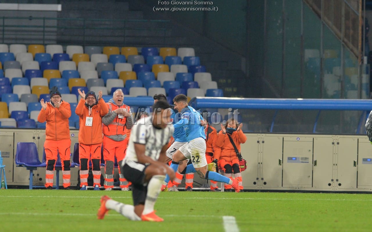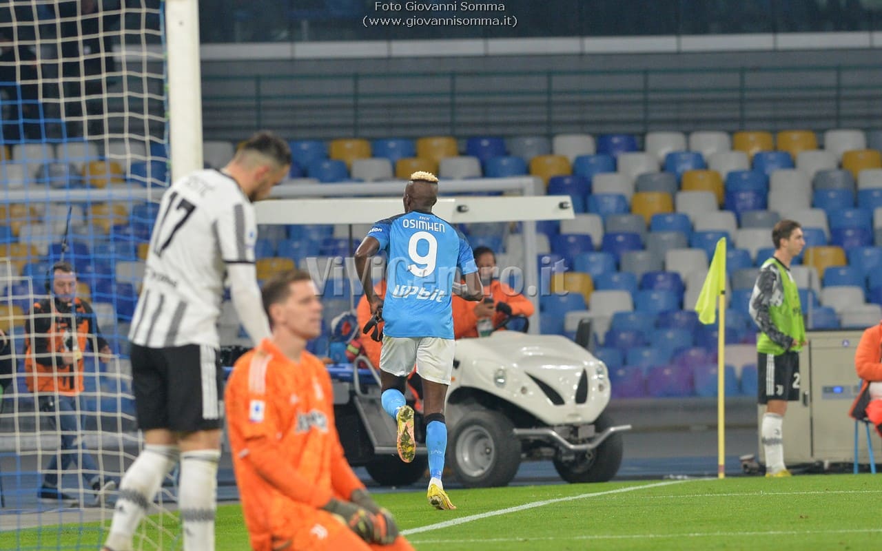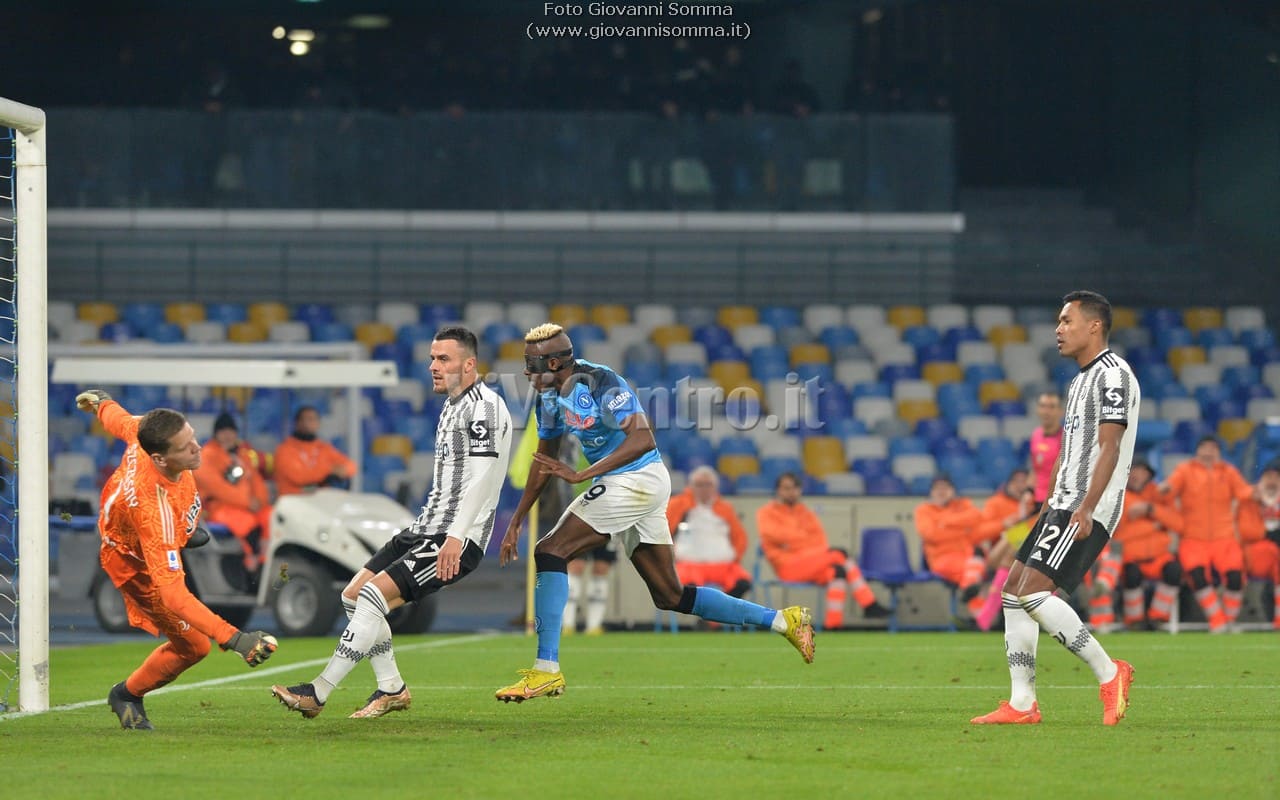 Al quattordicesimo Politano serve Kvaratskhelia al centro che si diletta in una sforbiciata, l’estremo difensore juventino si supera e devia ma trova Osimhen tutto solo che di testa appoggia il pallone in rete per l’1-0 Napoli!