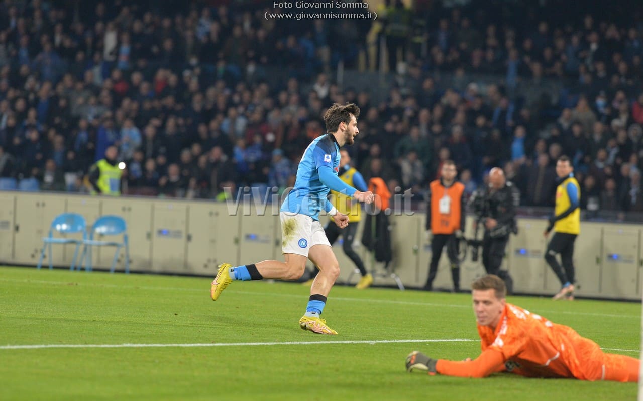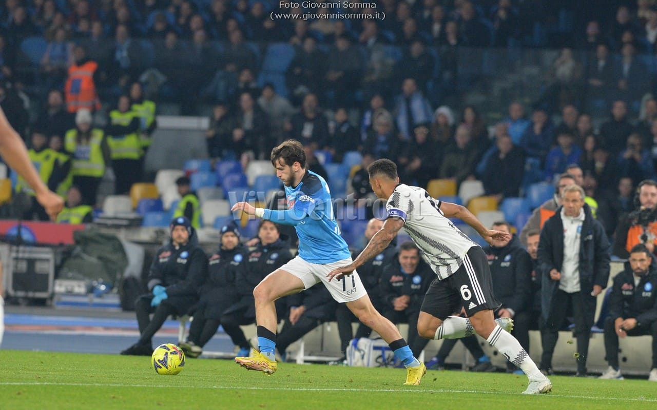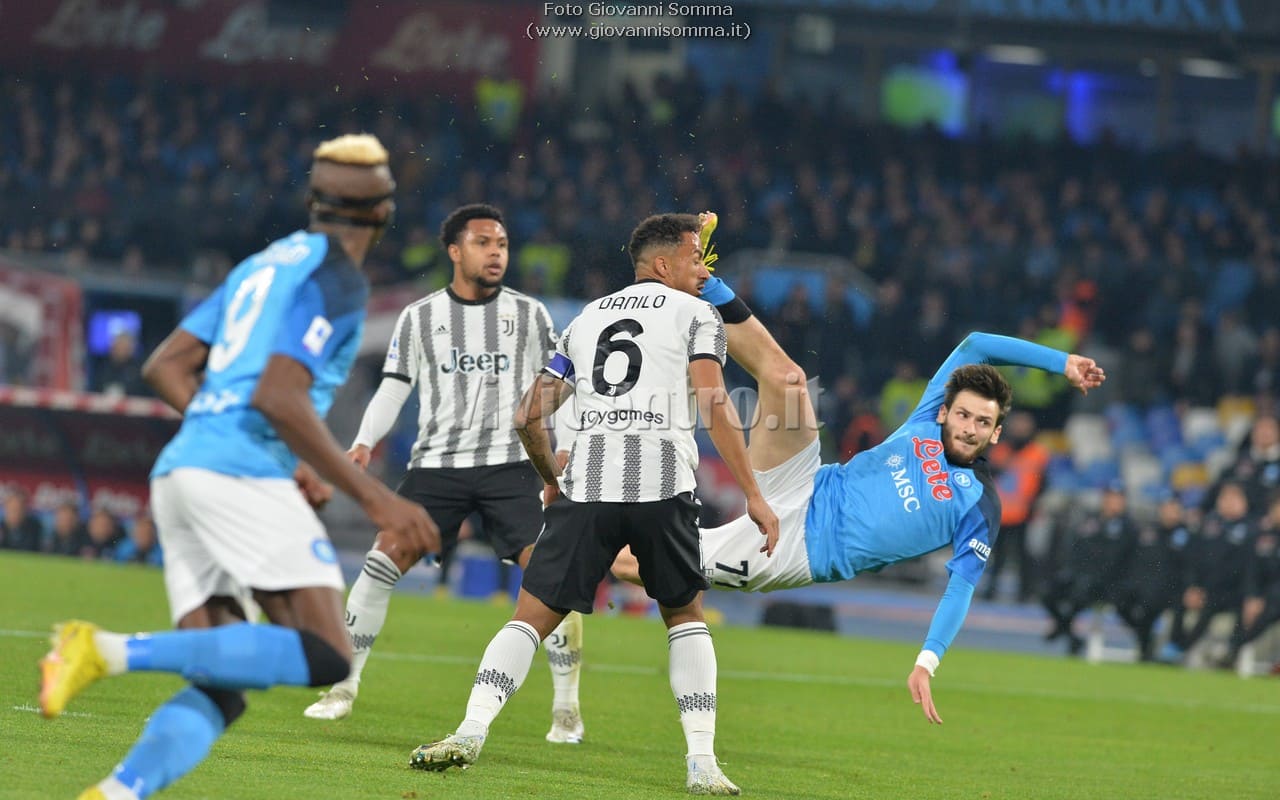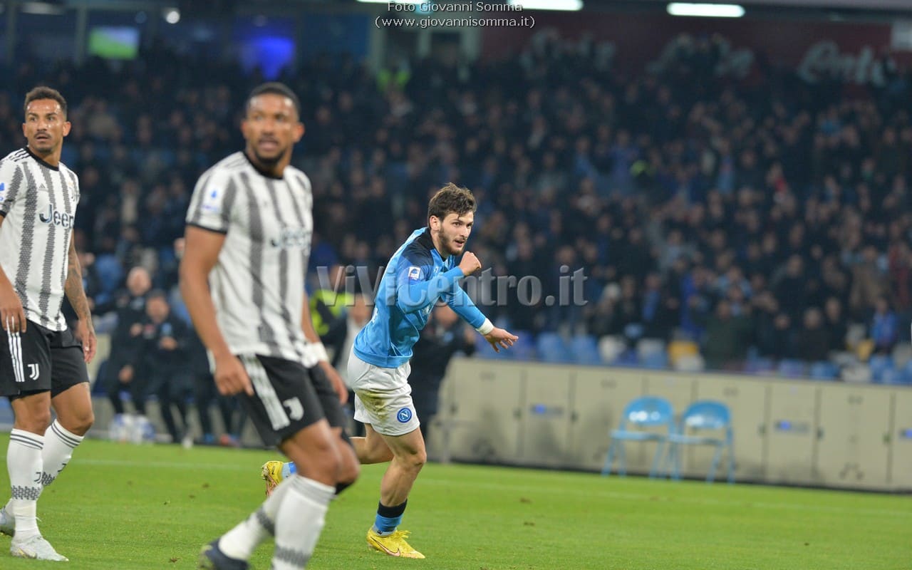 Al quattordicesimo Politano serve Kvaratskhelia al centro che si diletta in una sforbiciata, l’estremo difensore juventino si supera e devia ma trova Osimhen tutto solo che di testa appoggia il pallone in rete per l’1-0 Napoli!