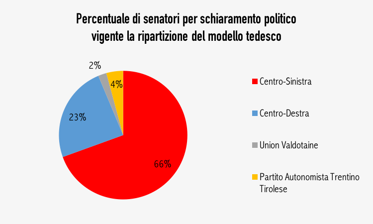 Come si può notare dalla figura 1, se i membri del Senato fossero espressione dei governi regionali, anziché dei consigli, avremmo uno sbilanciamento politico netto a favore dello schieramento che governa in gran parte delle regioni italiane (in questo momento storico il centro-sinistra). È ragionevole dunque supporre che non ci siano state le condizioni politiche per arrivare a un Senato federale come quello tedesco, in cui i membri della seconda camera siano espressione diretta dei governi territoriali.